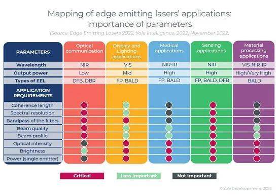 有許多應(yīng)用需要獨(dú)特的激光系統(tǒng)規(guī)格,這也會(huì)對(duì)EEL組件產(chǎn)生影響。此外,在技術(shù)系統(tǒng)層面,直接二極管、光纖激光器、DPSSL、OPSL和氣體激光器之間存在著強(qiáng)大的競(jìng)爭(zhēng)。