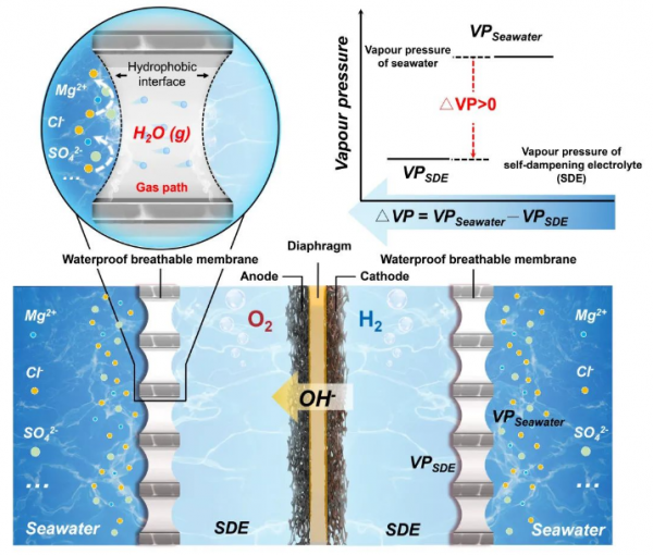 11月30日,中國(guó)工程院院士謝和平與他指導(dǎo)的深圳大學(xué)、四川大學(xué)博士生團(tuán)隊(duì)在《自然》發(fā)表論文,以物理力學(xué)與電化學(xué)相結(jié)合的全新思路,建立了相變遷移驅(qū)動(dòng)的海水無淡化原位直接電解制氫全新原理與技術(shù)。該技術(shù)徹底隔絕了海水離子,實(shí)現(xiàn)了無淡化過程、無副反應(yīng)、無額外能耗的高效海水原位直接電解制氫,即在海水里原位直接電解制氫。