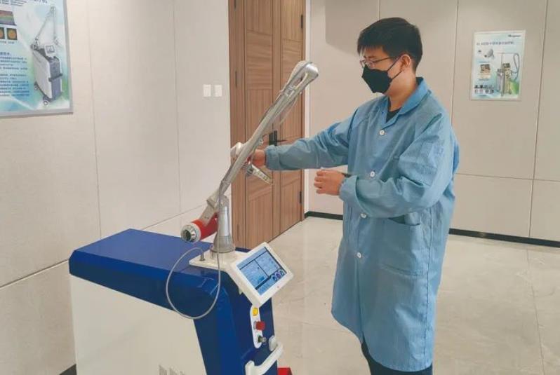 我市堅(jiān)定不移做大做強(qiáng)民營經(jīng)濟(jì)的具體行動(dòng)計(jì)劃、“真金白銀”的惠企政策讓科英激光的員工們無不歡欣鼓舞。1月30日,在產(chǎn)品開發(fā)部,研發(fā)工程師小孫正在調(diào)試公司最新獲批的首個(gè)國產(chǎn)超皮秒激光KL-M(P)型Q開關(guān)Nd:YAG皮秒激光治療機(jī)?!斑@款設(shè)備主要是去除文身及色素治療,由于其峰值功率高、照射停留時(shí)間短,疼痛感也會(huì)減輕?!毙O說。