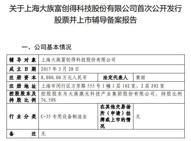 2月9日,證監(jiān)會(huì)披露了關(guān)于上海大族富創(chuàng)得科技股份有限公司(簡(jiǎn)稱:上海富創(chuàng)得)首次公開(kāi)發(fā)行股票并上市輔導(dǎo)備案報(bào)告。