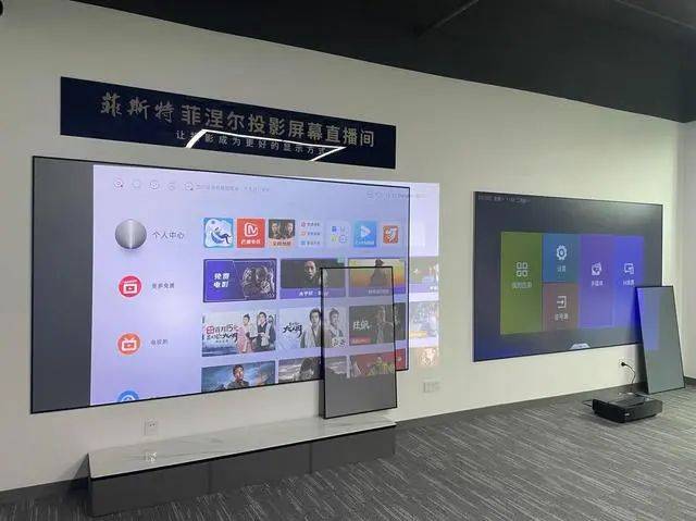↑菲斯特科技投影屏幕直播間里展示的激光屏幕