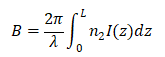 在脈沖放大過程SPM最先出現(xiàn),對于大部分脈沖來說,SPM效應會帶來無法補償?shù)姆蔷€性相移,最終導致去啁啾后脈沖出現(xiàn)基底。為了定量的描述整個系統(tǒng)引入的非線性系數(shù),引入了參量B積分,定義為