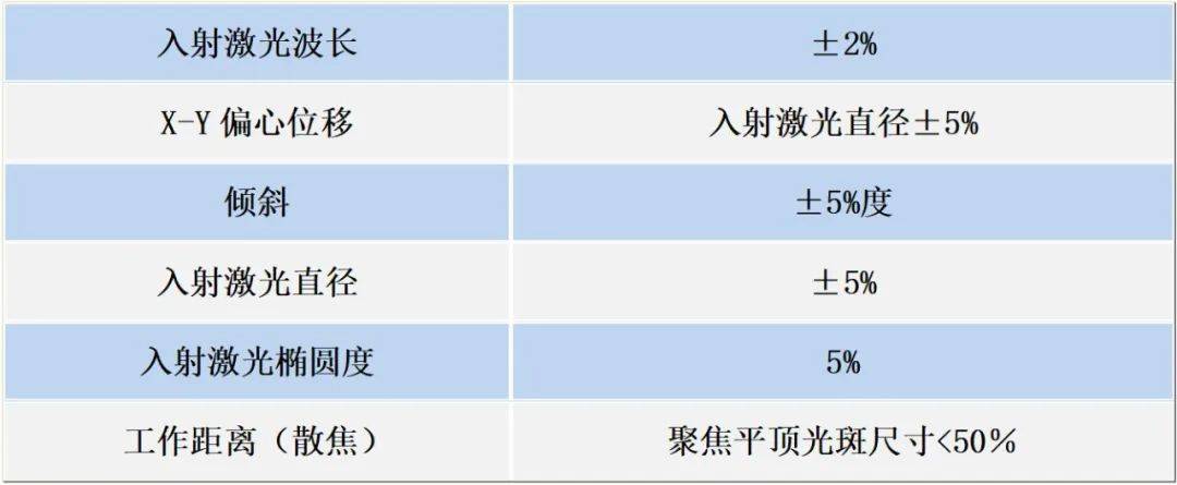 典型的光束整形器的公差表