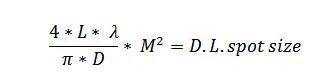 其中:L為聚焦光學(xué)器件的有效焦距,λ為入射激光波長,D為入射激光光束尺寸,M2為入射激光束質(zhì)量參數(shù)。