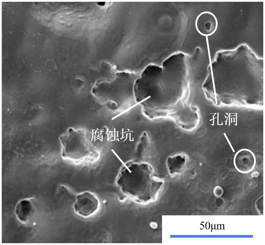 由圖15(a)以及表3可以看出,隨著激光功率的增加,極化曲線均呈現(xiàn)正向移動趨勢,自腐蝕電位逐步增大,即清洗后樣件表面的腐蝕動力小幅增強。腐蝕電流密度先減小后增加,表示樣件表面的抗腐蝕性能先增加后減小。激光功率增加,腐蝕電流密度最低為383.9,抗腐蝕性能最佳,此時極化曲線中鈍化區(qū)的鈍化平臺較寬,樣件的鈍化狀態(tài)較穩(wěn)定??垢g性逐漸增加的主要原因為激光使樣件表面疏松銹蝕氧化物去除的同時,對基體會產(chǎn)生不同程度的熱影響,細化晶格,提高表面完整性,從而抗腐蝕性能得到改善。當功率最大時,由微觀形貌可知,熱累積量過高,表面出現(xiàn)燒蝕坑,熔融物增加,基體發(fā)生損傷,抗腐蝕性下降。