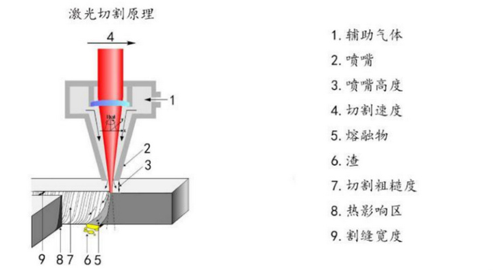 (一)激光切割的基本原理,簡單來說,就是用激光束將材料局部加熱至超過熔點(diǎn),然后用高壓氣體或蒸汽,將熔融的金屬吹離,從而形成一個非常窄的切口,并隨著激光束與材料相對移動,依次切割形成孔洞。