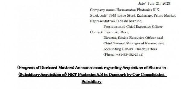 在此之前,在今年的5月2日,濱松光子2.05億歐元戰(zhàn)略收購NKT Photonics的交易被丹麥當(dāng)局拒絕,收購一度擱淺。