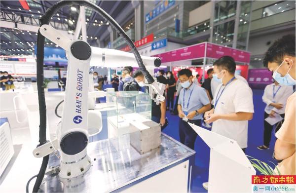深圳高交會大族激光展臺,參觀者了解機器化平臺。 南方日報記者 魯力 攝(資料圖)