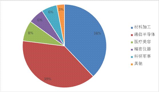 從全球范圍看,全球激光市場(chǎng)劃分中最大的細(xì)分市場(chǎng)為材料加工和光刻,2016年占比39%;通信和光存儲(chǔ)占比38%??蒲泻蛙娪?、醫(yī)療和美容、儀器儀表和傳感器,以及娛樂(lè)、顯示和打印細(xì)分市場(chǎng),分別排在第三至第六位。