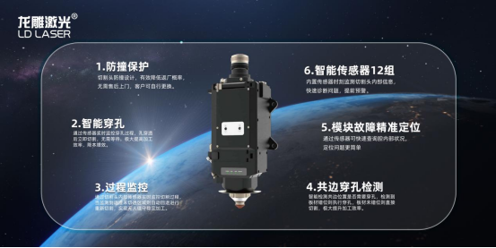 提及8萬瓦激光切割,用戶最為擔心一點的非切割頭穩(wěn)定性莫屬。龍雕激光采用全新的柏楚系統(tǒng)搭配波刺8萬瓦智能激光頭,既能實現(xiàn)對切割過程中氣壓、保護鏡/聚焦鏡污染、核心腔體溫度等環(huán)境數(shù)據(jù)實時監(jiān)測與反饋,還具備監(jiān)控切割過程(如切割過程中發(fā)現(xiàn)切不透會自動回切)、智能穿孔、智能收刀等智能化功能,足以實現(xiàn)長時間滿功率穩(wěn)定切割。