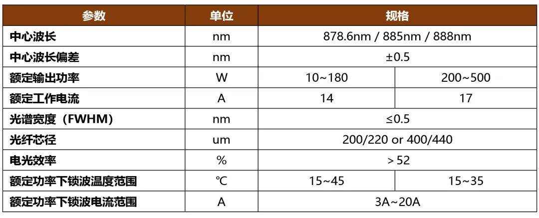 度亙核芯以市場(chǎng)發(fā)展為導(dǎo)向,以應(yīng)用需求為牽引,深耕市場(chǎng),持續(xù)創(chuàng)新,推出系列高效率、高亮度、輕量化、小體積、寬溫鎖定的半導(dǎo)體激光器。目前在售固體激光器泵浦模塊波長(zhǎng)包括878.6nm、885nm、888nm等,功率覆蓋10W~500W;產(chǎn)品規(guī)格多樣化,多種光纖芯徑可選;可根據(jù)客戶需求提供定制化方案,快速響應(yīng)不同終端客戶應(yīng)用需求,助力客戶贏得市場(chǎng)。