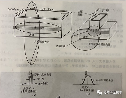 如上圖,不做脊型波導設計的a芯片和窄脊型波導芯片b。遠場圖案對相干光源而言,實質就是近場圖案(器件中模式形狀)的傅里葉變換。