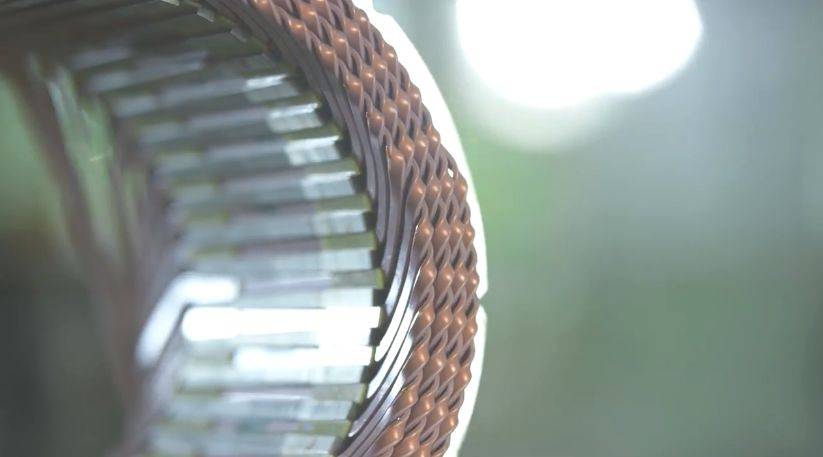 由于電動(dòng)汽車需求的增長,電機(jī)制造商在為高產(chǎn)能、高質(zhì)量焊接尋求更有生產(chǎn)力的工藝,更高程度自動(dòng)化的實(shí)現(xiàn)是高產(chǎn)能需求的根本保證。因此,扁線型定子在很大程度上占了上風(fēng):制造商開始使用壓縮空氣將矩形銅線(因其形狀而稱為“扁銅線”)插入整個(gè)定子槽中,而不是像以前那樣在單個(gè)定子槽周圍纏繞圓銅線。扁銅線矩形橫截面的典型邊緣長度在 2 至 4 mm之間。該過程實(shí)現(xiàn)了更高的生產(chǎn)速度,并且可以輕松實(shí)現(xiàn)自動(dòng)化。由于扁銅線比圓導(dǎo)線更硬,扁銅線在電機(jī)中的對(duì)準(zhǔn)可以被更好地控制。填充系數(shù)越大,熱負(fù)載容量越高,電機(jī)功率也越大。銅線涂有絕緣層,需要在兩端局部消融(扁銅線去漆)以實(shí)現(xiàn)接觸,在這里使用脈沖激光加工。與機(jī)械加工(如刨削和銑削)相比,激光加工的生產(chǎn)率提高了 80%。