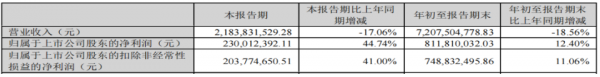 10月26日,華工科技產(chǎn)業(yè)股份有限公司(以下簡稱“華工科技”)發(fā)布了2023年三季度業(yè)績快報稱。報告期內(nèi),華工科技實(shí)現(xiàn)營收21.84億元,同比下降17.06%;歸屬于上市公司股東的凈利潤2.30億元,同比增長44.74%。公司前三季度共營收72.08億元,同比下降18.56%;歸屬于上市公司股東凈利潤8.12億元,同比增長12.40%。
