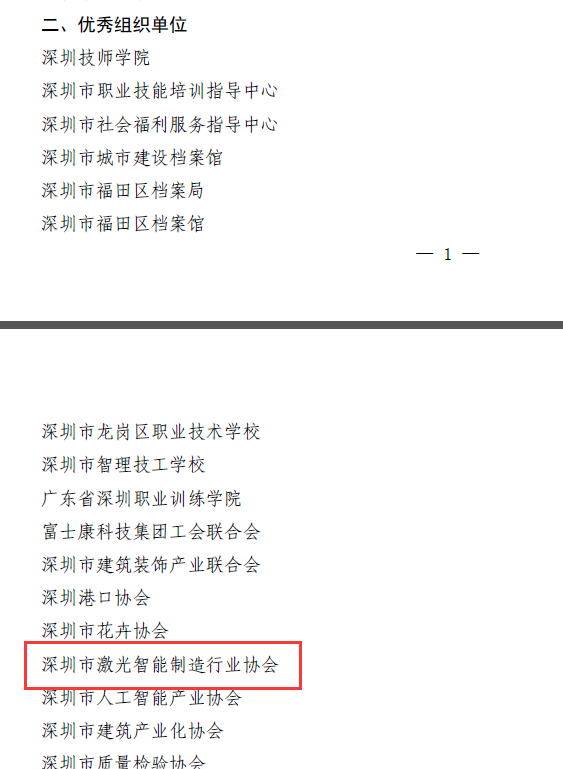 值得一提的是,深圳市激光智能制造行業(yè)協(xié)會(huì)被認(rèn)定為“優(yōu)秀組織單位”。