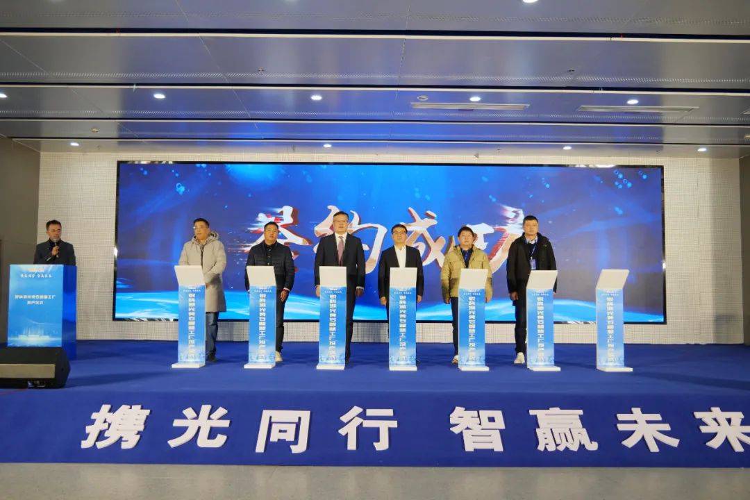 最后,航天三江副總經(jīng)理錢微同志宣布銳科激光黃石智慧工廠正式投產(chǎn)。錢微、郭波、王又良、陳正兵、余文化、閆大鵬上臺共同啟動投產(chǎn)按鈕?,F(xiàn)場數(shù)百名嘉賓雀躍歡呼,一起見證銳科激光邁入智能制造新篇章。