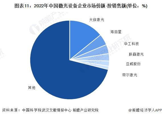 從激光設備來看,2022 年大族激光市場份額占比最高,保持龍頭地位,占比超 14%,其余企業(yè)市場份額占比均在 5% 以下。