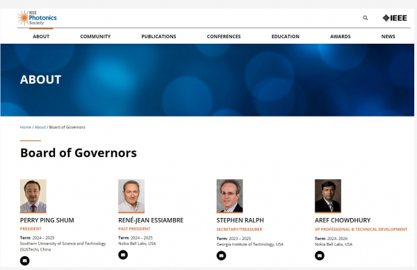 沈平教授擔(dān)任電氣與電子工程師學(xué)會(huì)光子學(xué)協(xié)會(huì)第37任全球主席