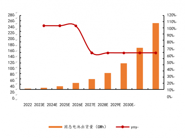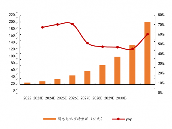 圖表1:預(yù)計(jì) 2023-2030 年固態(tài)電池市場(chǎng)空間