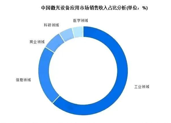 我國激光設(shè)備主要應用在工業(yè)、信息、商業(yè)、醫(yī)學以及科研領(lǐng)域。根據(jù)中國科學院武漢文獻情報中心數(shù)據(jù)顯示,2021年工業(yè)領(lǐng)域激光設(shè)備市場占比最大,達62%,其次為信息領(lǐng)域激光設(shè)備市場,占比達22%。