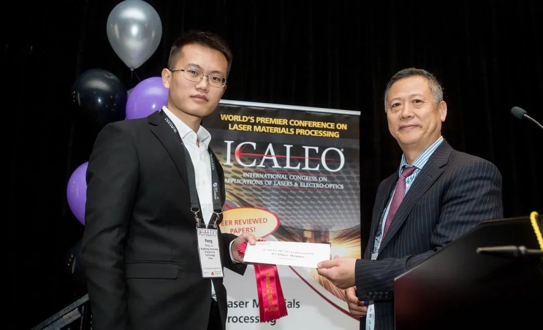 ▲劉朋(左)在激光和電子光學(xué)應(yīng)用國(guó)際大會(huì)(ICALEO)現(xiàn)場(chǎng)