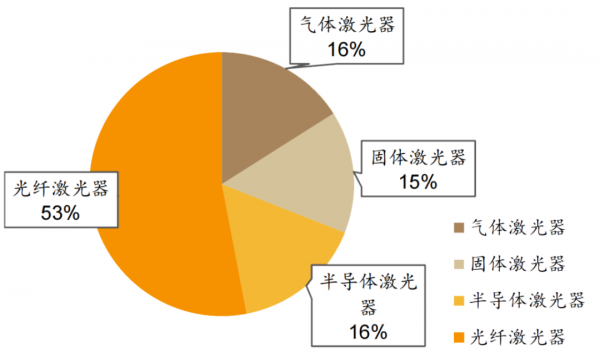 圖2 不同類型激光器市場占比格局