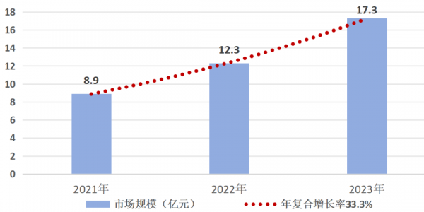 高端制造與醫(yī)療器械等領(lǐng)域?qū)す馄餍枨蟪掷m(xù)擴大,非光通信類激光芯片高速增長,根據(jù)華泰證券測算,中國非光通信類激光芯片市場規(guī)模由2021年的8.9億元增長至2023年的17.3億元,2021~2023年年復(fù)合增長率為33.3%[9],行業(yè)處于成長期,未來仍將保持高速增長。