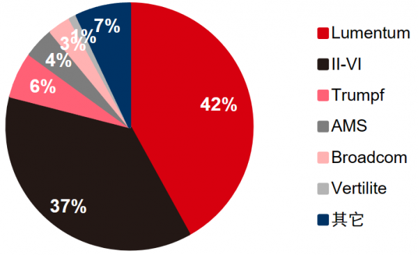 圖5 全球VCSEL芯片市場份額(2021)