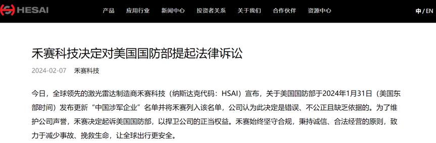 今年 2 月 1 日,美國國防部將禾賽科技列入制裁名單。直接的負(fù)面影響是,有關(guān)美國本土及相關(guān)方的生意,禾賽科技無法再進(jìn)行。