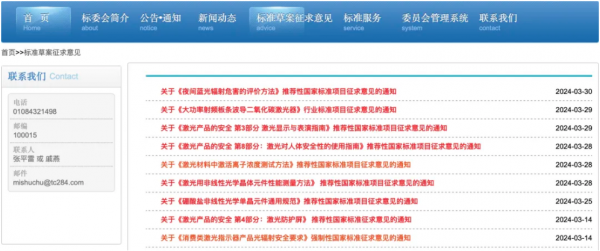 3.推薦性國家標(biāo)準(zhǔn)制定項目“制定《激光產(chǎn)品的安全 第8部分:激光對人體安全性的使用指南》”(計劃編號20232016-T-604),征求意見時間為:2024年3月20日至5月25日。
