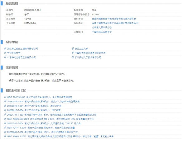 2.推薦性國家標(biāo)準(zhǔn)修訂項目“修訂GB/T 7247.3—2016《激光產(chǎn)品的安全 第3部分 激光顯示與表演指南》”(計劃編號20232022-T-604),征求意見時間為:2024年3月20日至5月25日。