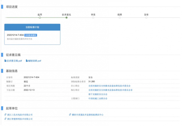 8. 強制性國家標(biāo)準(zhǔn)制定項目“制定《消費類激光指示器產(chǎn)品光輻射安全要求》”(計劃編號20221505-Q-339),征求意見時間為:2024年3月12日至5月11日。
