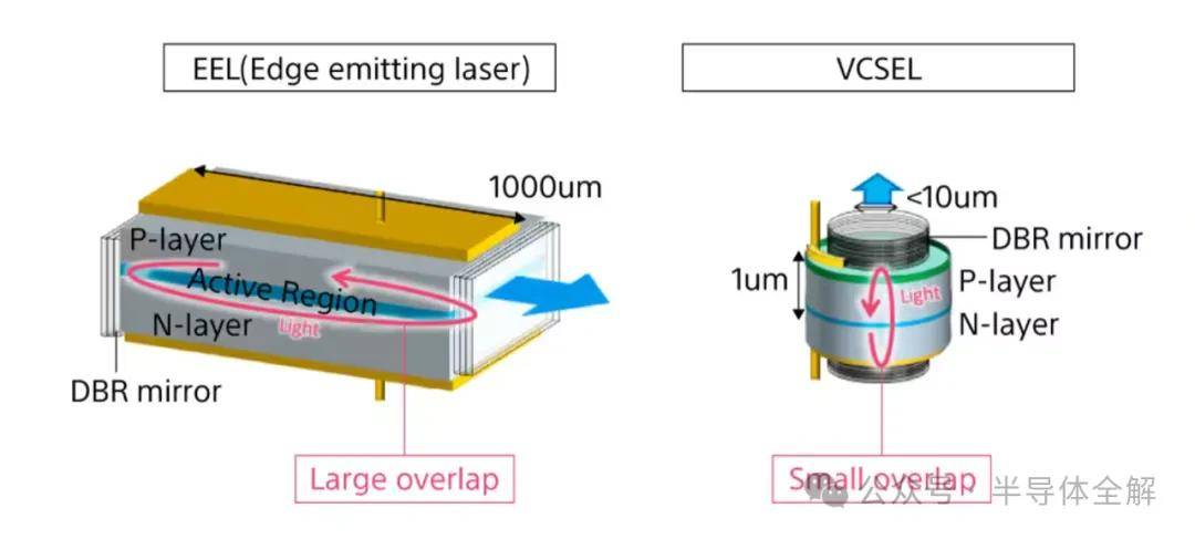 按照出光方向的差別,可以將半導體激光器分為兩類:垂直腔面發(fā)射半導體激光器(VCSEL)和邊緣發(fā)射半導體激光器(Edge Emitting Laser, EEL)。