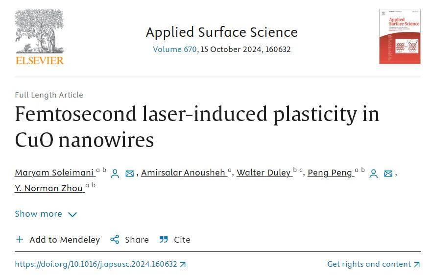 據(jù)悉,加拿大滑鐵盧大學(xué)的科研人員報(bào)道飛秒激光誘導(dǎo)的氧化銅納米線可塑性的研究。相關(guān)研究以“Femtosecond laser-induced plasticity in CuO nanowires”為題發(fā)表在《Applied Surface Science》上。