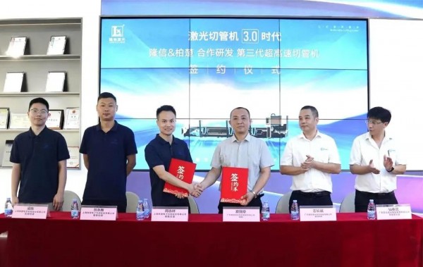隆信激光是激光切管裝備制造龍頭企業(yè)之一、國家標(biāo)準(zhǔn)起草單位,專精特新企業(yè);柏楚電子是國內(nèi)激光切割機床數(shù)控系統(tǒng)研發(fā)的領(lǐng)導(dǎo)者,軟件開發(fā)能力在國內(nèi)具有領(lǐng)先優(yōu)勢,此次強強聯(lián)合,不僅標(biāo)志著兩大行業(yè)巨擘在技術(shù)、市場與戰(zhàn)略層面的深度融合,更預(yù)示著將推動激光切管機行業(yè)正式邁入前所未有的3.0時代。