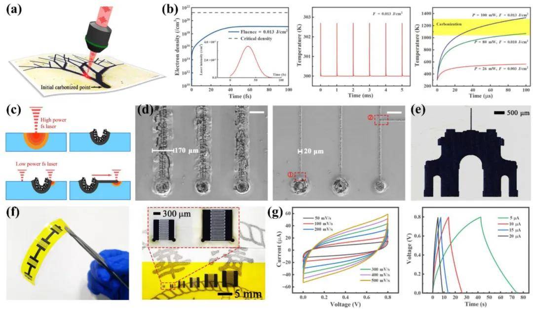 圖11超快激光貝塞爾光束加工制備納米間隙石墨烯超級電容器。