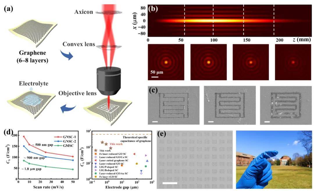 圖11超快激光貝塞爾光束加工制備納米間隙石墨烯超級電容器。