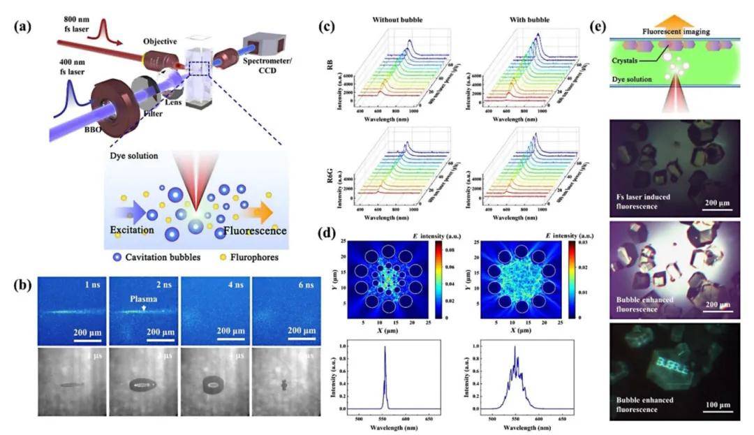 圖8超快激光在染料溶液中誘導(dǎo)氣泡增強(qiáng)熒光。