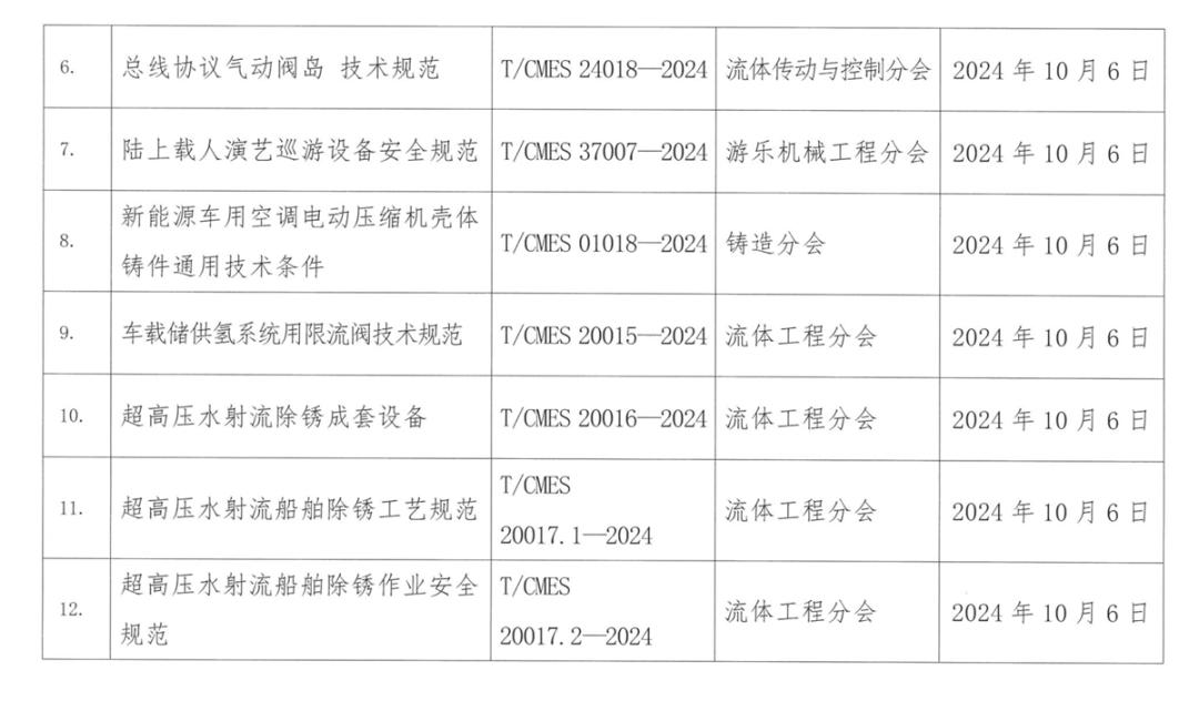《車載儲供氫系統(tǒng)用限流閥技術(shù)規(guī)范》(編號:T/CMES 20015—2024)、《超高壓水射流除銹成套設(shè)備》(編號:T/CMES 20016—2024)、《超高壓水射流船舶除銹工藝規(guī)范》(編號:T/CMES 20017.1—2024)和《超高壓水射流船舶除銹作業(yè)安全規(guī)范》(編號:T/CMES 20017.2—2024)四項標(biāo)準(zhǔn)由流體工程標(biāo)準(zhǔn)工作組提出,《車載儲供氫系統(tǒng)用限流閥技術(shù)規(guī)范》由合肥通用機械研究院有限公司、浙江大學(xué)等單位共同研制,規(guī)定了車載儲供氫系統(tǒng)用限流閥的術(shù)語和定義、技術(shù)要求、試驗方法、檢驗規(guī)則、標(biāo)志、包裝、運輸和儲存?!冻邏核淞鞒P成套設(shè)備》由通用機械關(guān)鍵核心基礎(chǔ)件創(chuàng)新中心(安徽)有限公司、南通中遠海運船務(wù)工程有限公司、舟山中遠海運重工有限公司、南通中遠克萊芬船舶工程有限公司等單位共同研制,規(guī)定了超高壓水射流除銹成套裝備的組成與基本參數(shù)、技術(shù)要求、部件要求、試驗方法、檢驗規(guī)則以及標(biāo)志、包裝和貯存?!冻邏核淞鞔俺P工藝規(guī)范》由南通中遠海運船務(wù)工程有限公司、合肥通用機械研究院有限公司、舟山中遠海運重工有限公司、南通中遠克萊芬船舶工程有限公司等單位共同研制,規(guī)定了超高壓水射流除銹工藝的除銹處理等級、工藝參數(shù)和除銹作業(yè)模式等?!冻邏核淞鞔俺P作業(yè)安全規(guī)范》由南通中遠海運船務(wù)工程有限公司、舟山中遠海運重工有限公司、合肥通用機械研究院有限公司、南通中遠克萊芬船舶工程有限公司等單位共同研制,規(guī)定了超高壓水射流船舶除銹安全作業(yè)的定義、除銹作業(yè)隊(人員、培訓(xùn)、防護與事故)、作業(yè)前的準(zhǔn)備、作業(yè)規(guī)程和設(shè)備維護等。