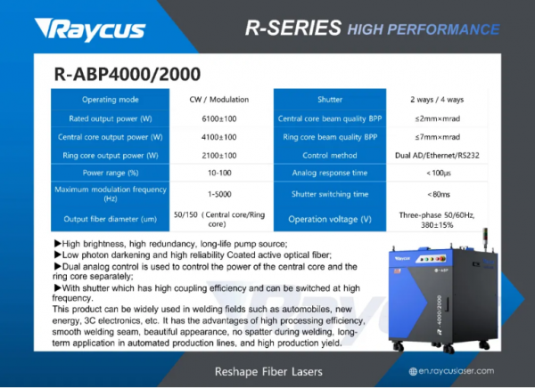 銳科旗幟高端系列產(chǎn)品主打高端領域,精準把握汽車制造、新能源、光伏太陽能、3D 打印、航空航天等高端應用市場,進行了9大升級突破,快速切入進口激光器壟斷的高端制造業(yè)。本次展會旗幟系列產(chǎn)品包括應用于高質量3D打印的C1000S AM激光器,旗幟模環(huán)形光斑4000/2000激光器——應用于動力電池、新能源汽車、3C電子等領域焊接,旗幟系列P500MX激光器——應用于應用于新能源極柱清洗、極片清洗、極耳切割、扁銅線清洗、薄銅片切割、車架號深雕等。近年來,手持焊激光器成為激光應用領域的一匹黑馬,市場規(guī)模持續(xù)增長,競爭尤為激烈,但存在加工效率低、不便攜、界面難操作和價高質劣等方面的需求痛點。銳科激光針對這些痛點專為市場打造了高品質的焊將系列手持焊專用激光器。此次展會銳科帶來的手持焊系列產(chǎn)品包括600W、900W、1200W、1500W焊將系列風冷手持焊專用激光器和1200W、1500W、2000W焊將系列水冷手持焊專用激光器。它們具備5大產(chǎn)品優(yōu)勢:(1)高效率:足功率,高光束質量,加工效率提升;(2)輕量化:體積小巧,結構緊湊,重量輕;(3)智能化:激光智聯(lián),一部手機即可高效完成全部操作;(4)耐久性:水冷機雙溫雙控,支持 24 小時全天候工作;(5)高質量:長期加工一致性好,焊縫質量美觀。可以廣泛應用于汽車、家裝、廣告、五金、門窗和櫥柜等行業(yè)。