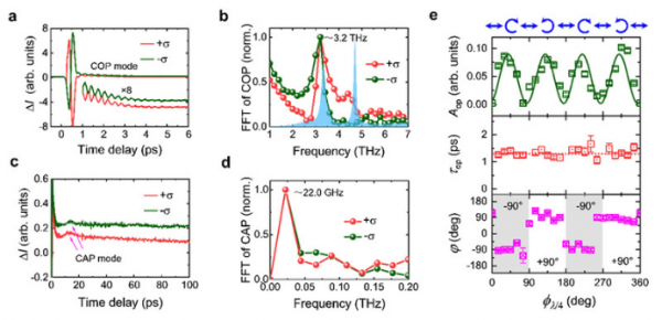 圖1. 全光產(chǎn)生、探測(cè)相干聲子和光螺旋度依賴的相干光學(xué)聲子。