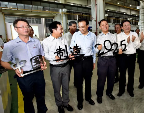2016年10月13日,在深圳大族激光(002008)工廠內(nèi),時(shí)任國(guó)務(wù)院總理李克強(qiáng)與大族激光董事長(zhǎng)高云峰、副總裁陳焱合影,鼓勵(lì)他們“中國(guó)制造2025”大有希望,要在你們手上大放光芒。