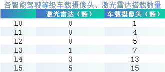 并且,隨著智能駕駛等級的提升,汽車配備的激光雷達和車載攝像頭數(shù)量都有不同程度的增加。