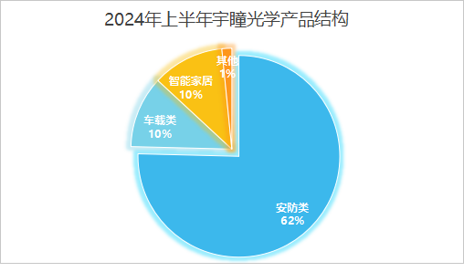 從產(chǎn)品結(jié)構(gòu)看,安防類產(chǎn)品是宇瞳光學(xué)的第一大收入來源,2024年上半年營收占比達到了62%。