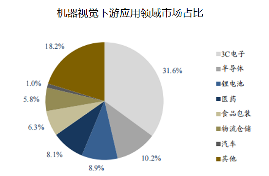 機器視覺,廣泛應(yīng)用于3C電子、半導(dǎo)體、智能交通等多個領(lǐng)域。其中,3C電子領(lǐng)域的占比最大,達到了32%。