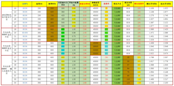 3、激光工藝參數對毛化Ra值的影響