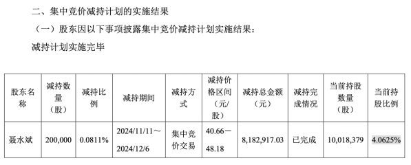 在去年11月11日至12月6日期間,公司股東聶水斌減持公司20萬股股票,共套現(xiàn)818.29萬元。減持完成后,聶水斌持股比例由4.14%降至4.06%。這并非聶水斌首次減持公司股份,其在2023年2月曾減持公司79.91萬股股份,共套現(xiàn)5239.44萬元。