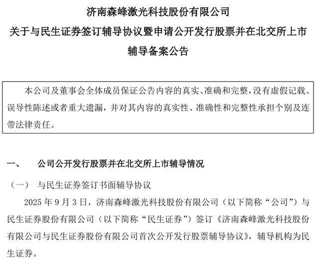 濟南森峰激光轉道北交所,再度啟動上市輔導