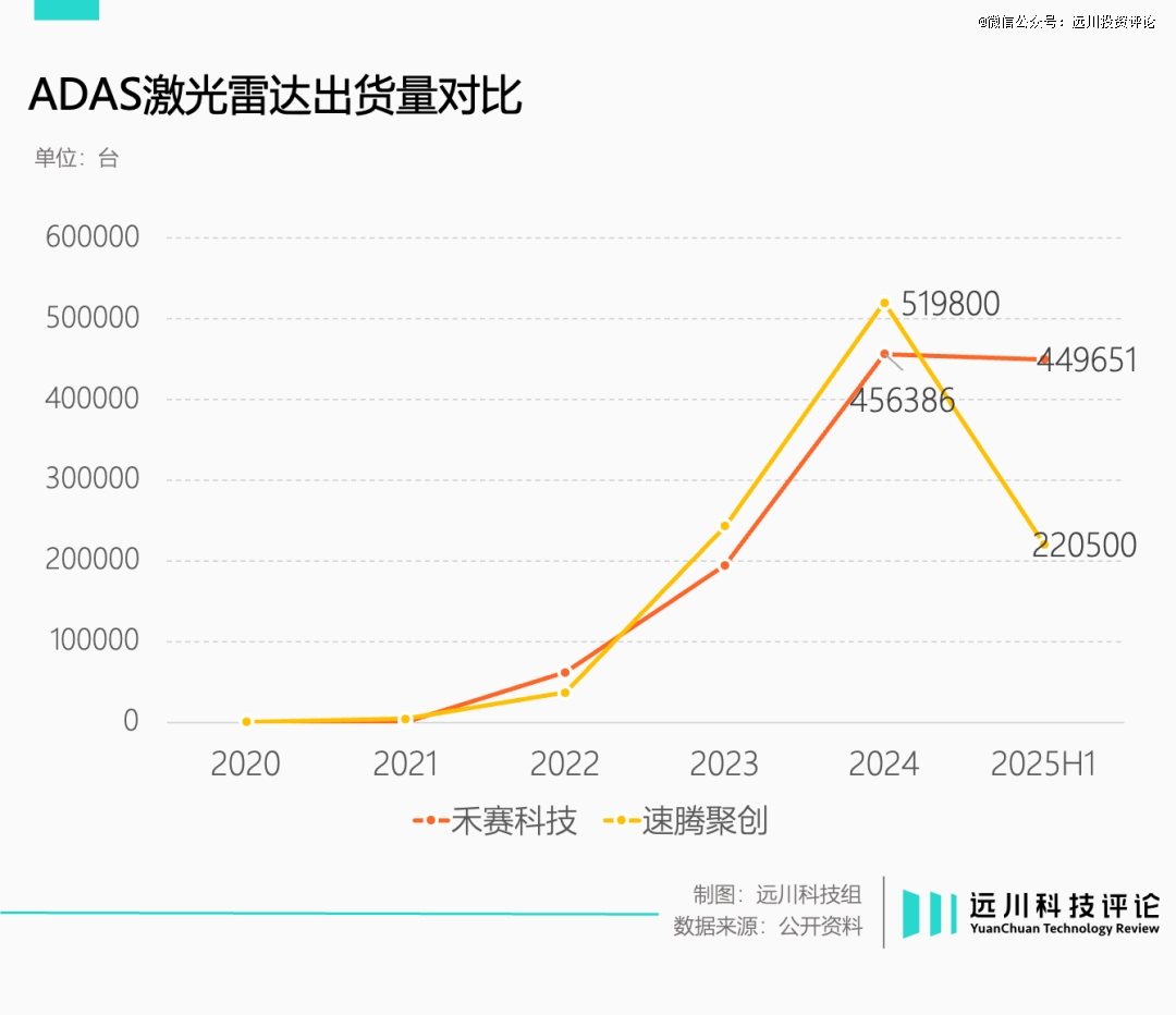 從去年出貨量來看,禾賽和速騰聚創(chuàng)的ADAS激光雷達(dá)出貨量占比,都超過90%。