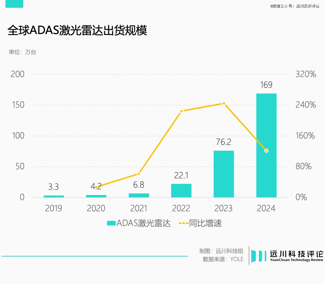 按照Yole統(tǒng)計(jì)[4],去年乘用車激光雷達(dá)搭載量達(dá)到169萬臺(tái)。這是什么概念?意味著激光雷達(dá)廠商用愛發(fā)電十多年,放在9000萬輛的全球銷量大盤里,滲透率還不到2%。